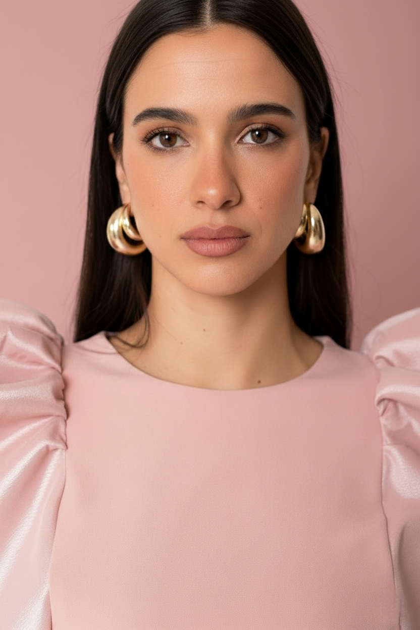 Disponible en rosa nude, suave y luminoso, y en verde esmeralda, intenso y elegante, dos tonos pensados para destacar en celebraciones de día o de tarde.
