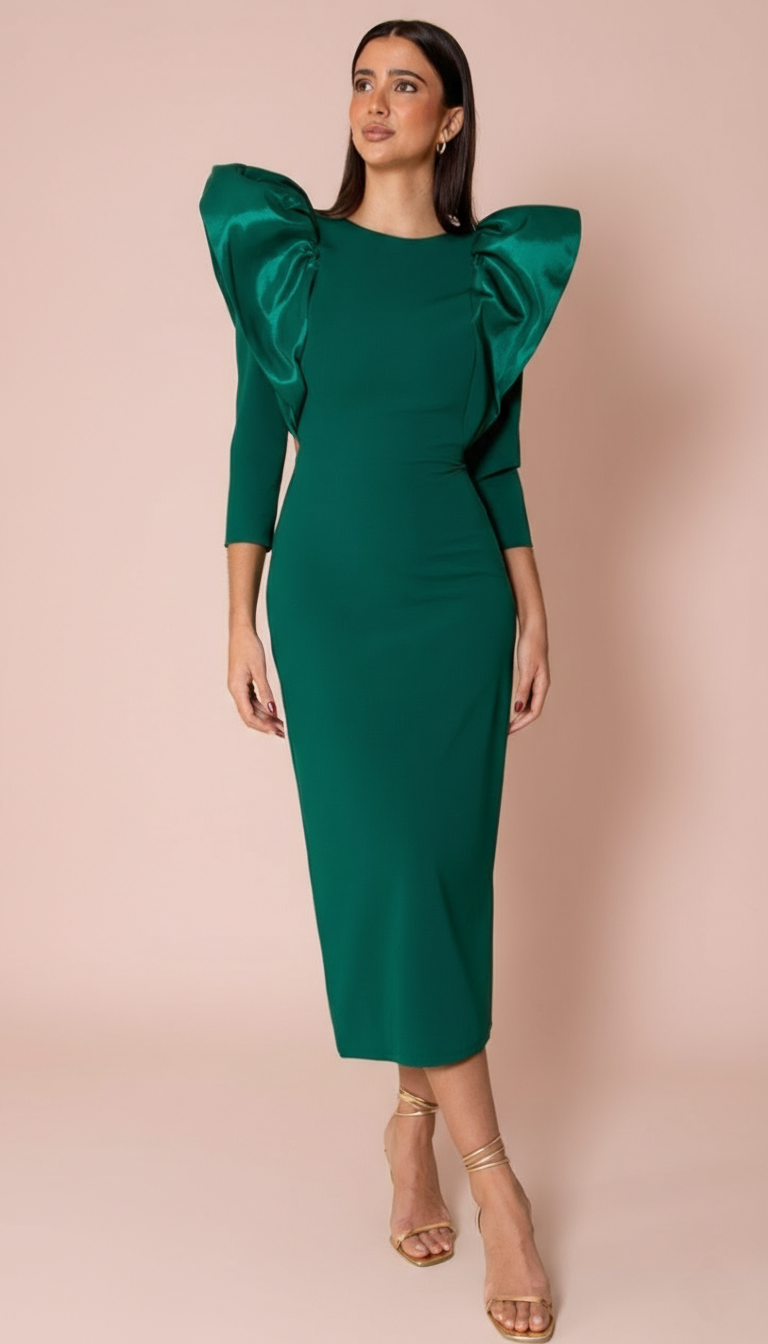 Ideal como vestido de invitada, msmá de comunión, vestido de fiesta midi o vestido para boda, cóctel o evento especial, cuando se busca una silueta estilizada con un detalle de diseño que marque la diferencia.