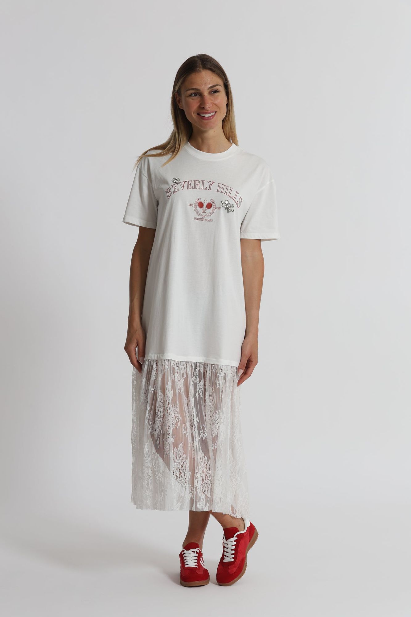 Vestido de manga corta «Beverly Hills» con inserciones de encaje