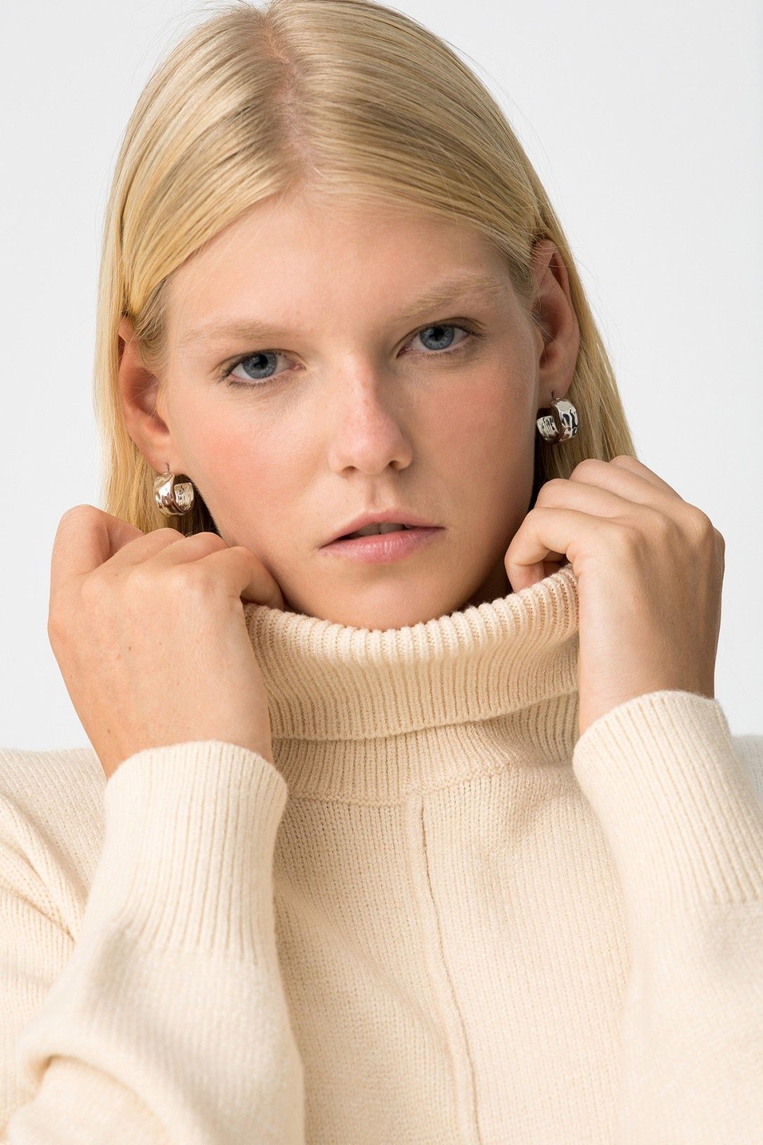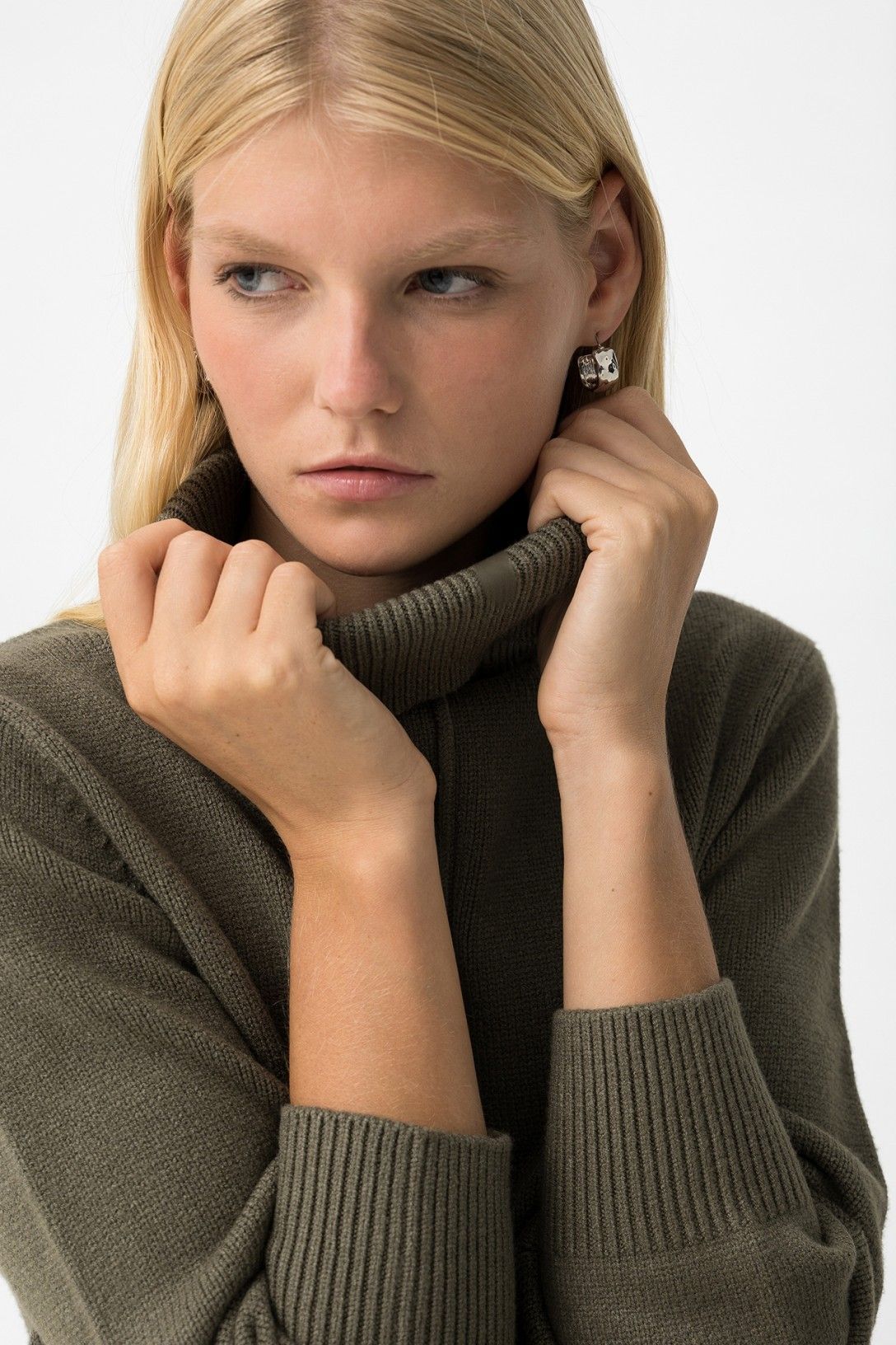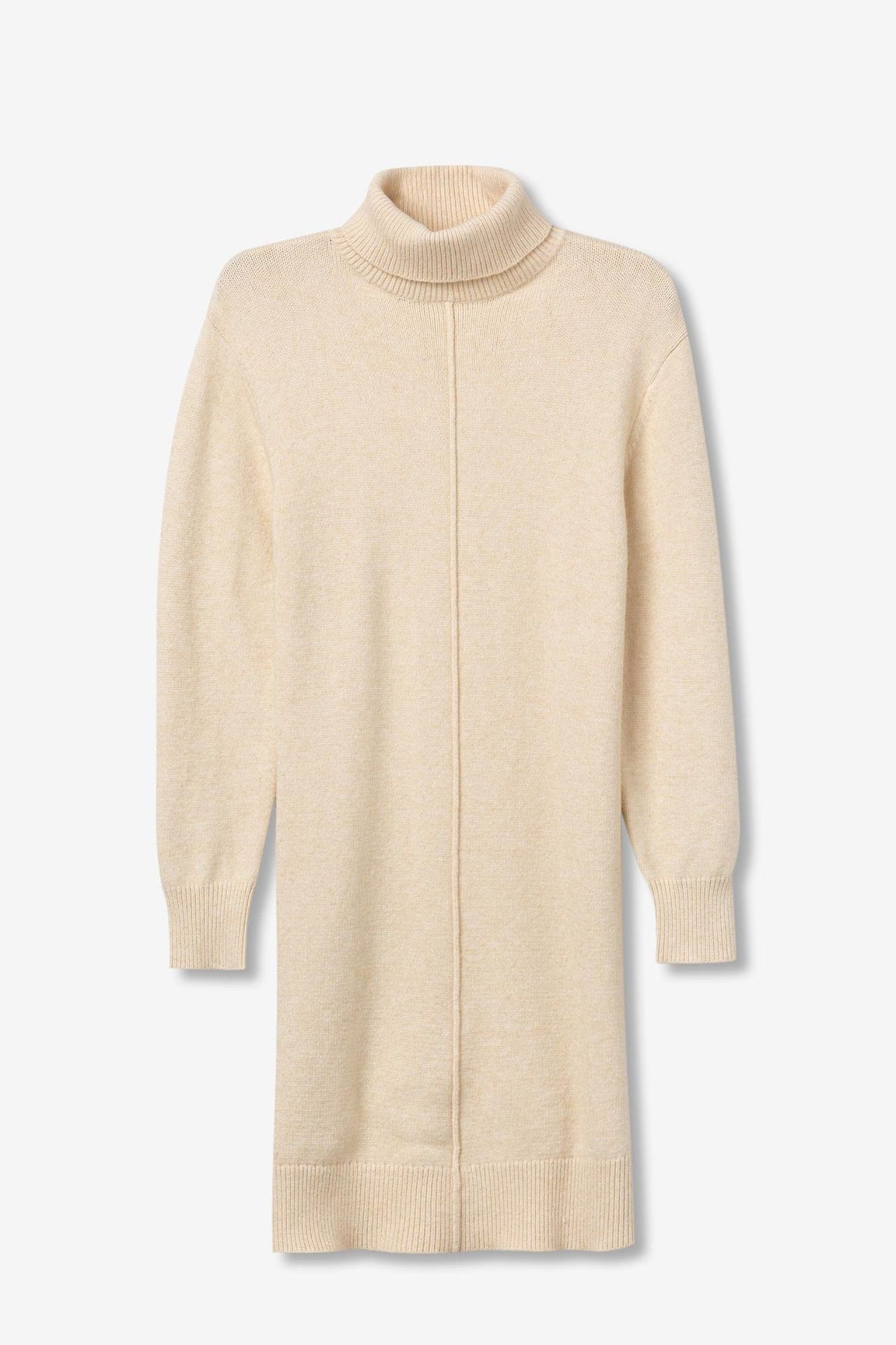 Vestido regular fit de punto, con costura frontal, cuello alto, manga larga y acabados en punto canalé.