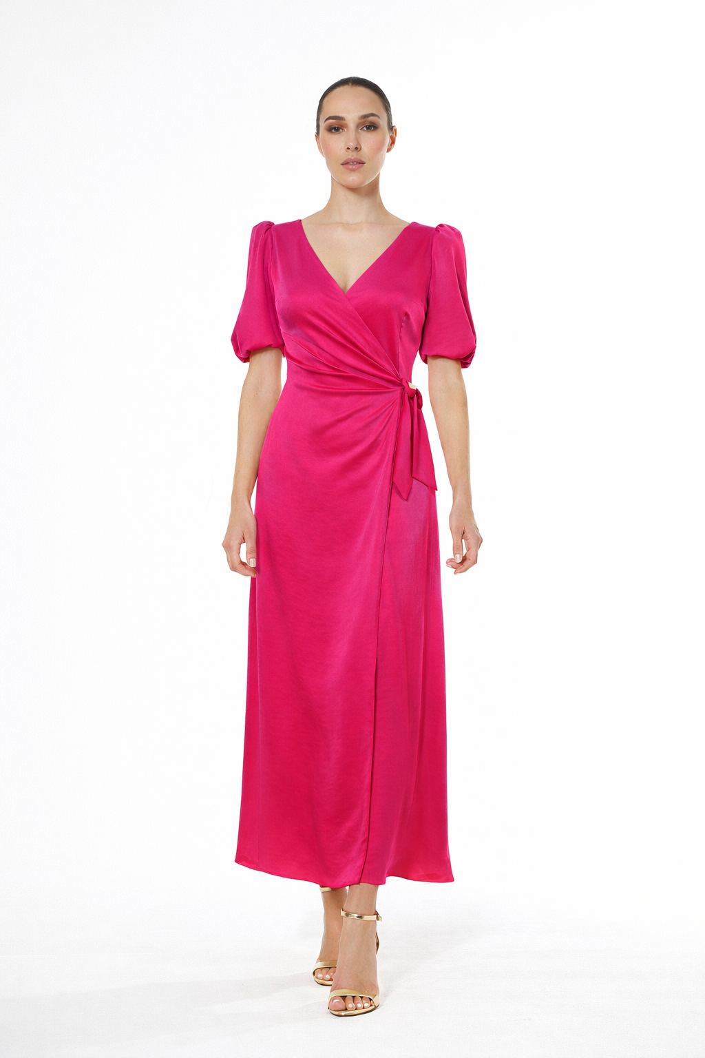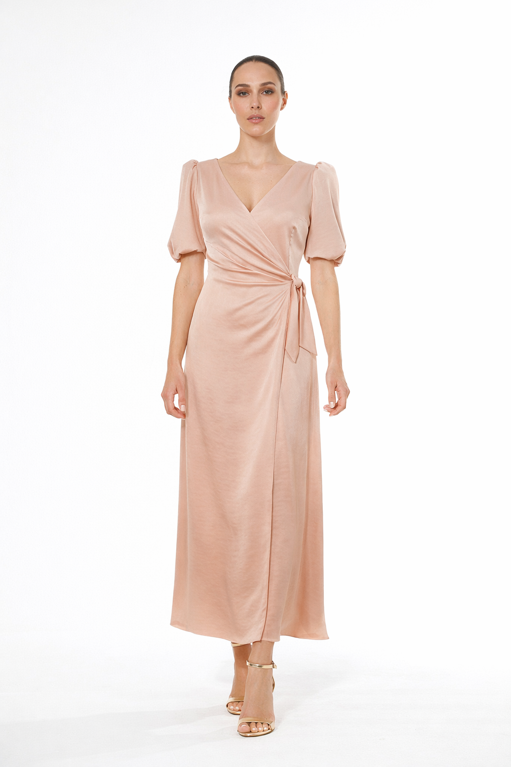 VESTIDO DE FIESTA LARGO CRUZADO ESPALDA Y VOLANTES