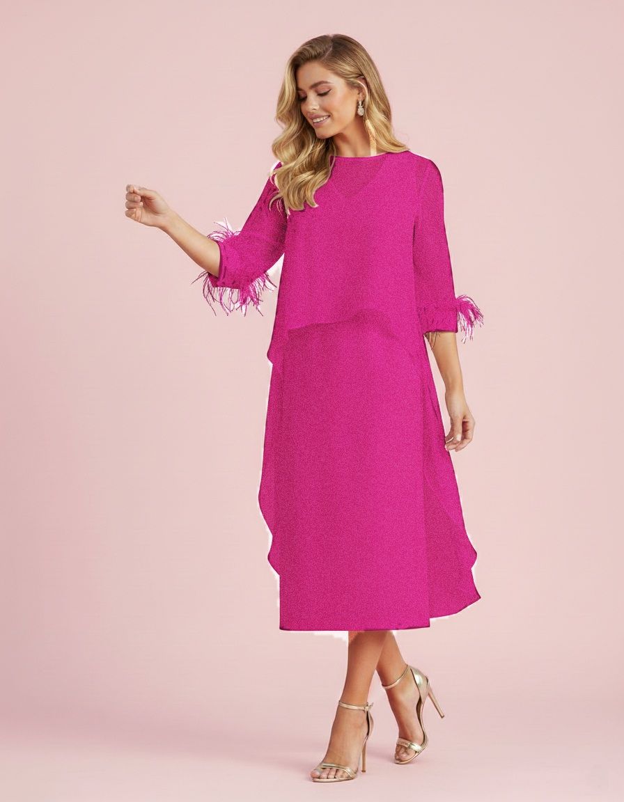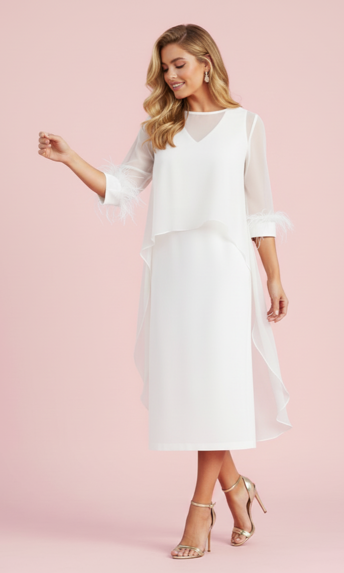 Vestido Elegante con Detalle de Plumas y Escote en V