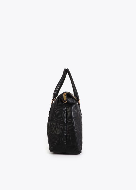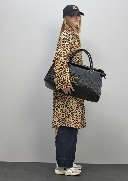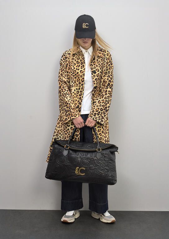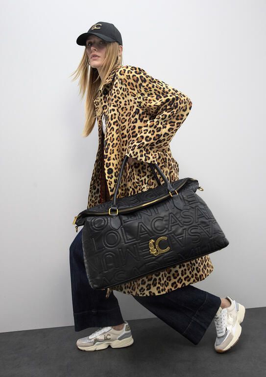 Bolso de viaje elegante con diseño pespunteado y logo de Lola Casademunt. Incluye asa bandolera desmontable para llevar al hombro. Amplio interior con cierre de cremallera y solapa soblada para conseguir máxima capacidad.