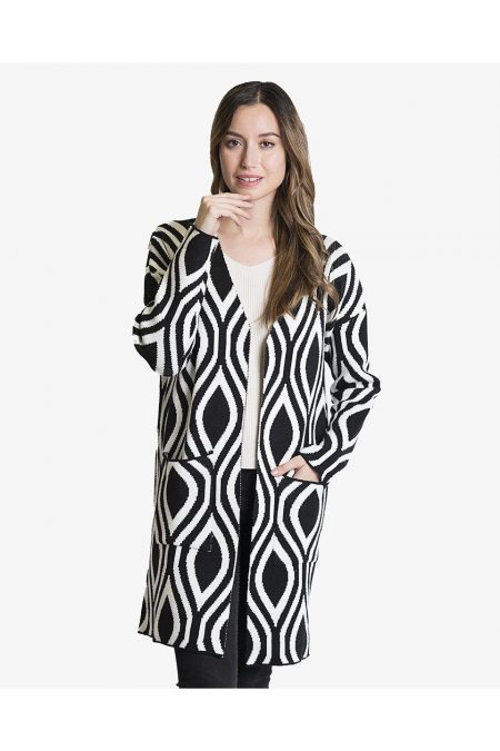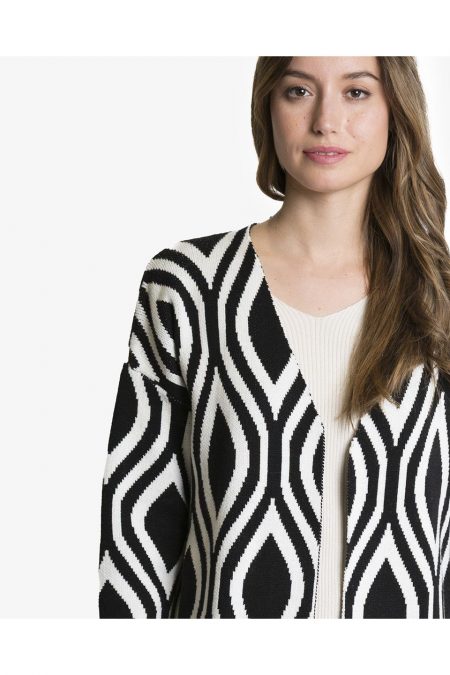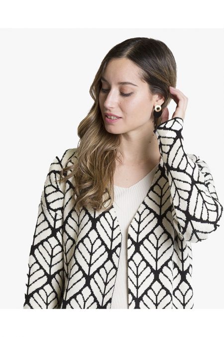 El precio original era: 69,99 €.55,00 €El precio actual es: 55,00 €. IVA incluidoChaqueta de punto estampado geométrico