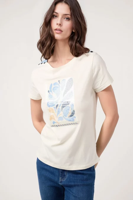 Camiseta flor tachas